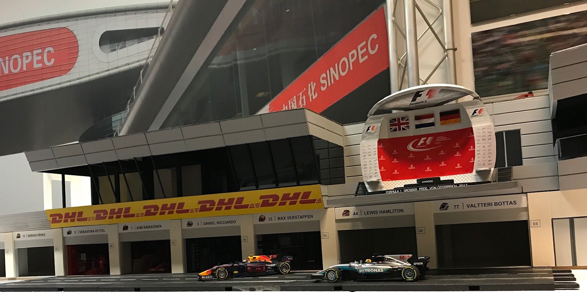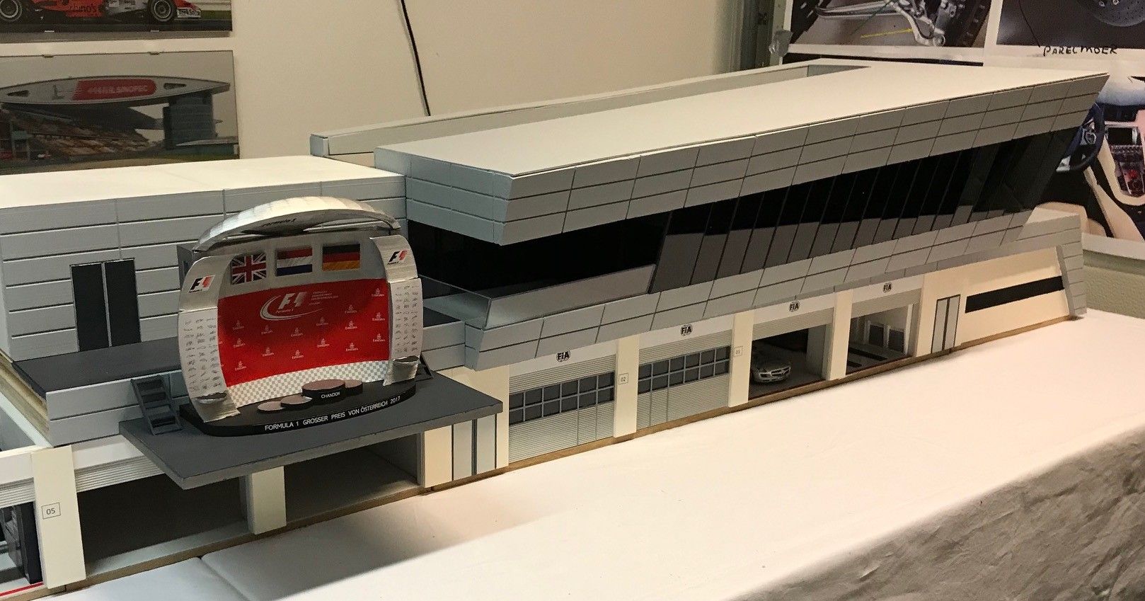 Ook de volledige pitstraat van de Red Bull Ring is 3D geprint. Alle gebouwen, de pitboxen,